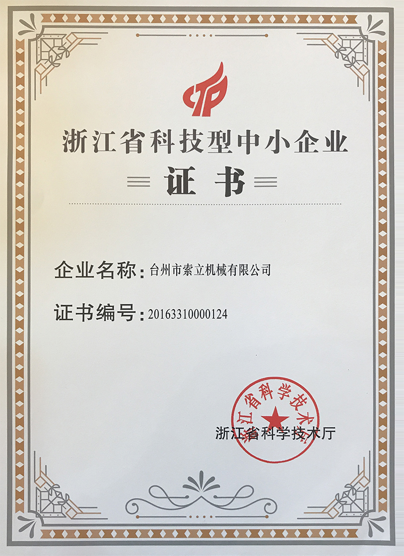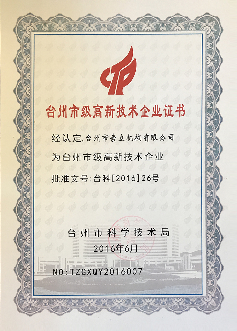 先后被浙江省科學(xué)技術(shù)廳授予“浙江科技型中小企業(yè)”、臺(tái)州市科技局授予“臺(tái)州市級(jí)高新技術(shù)企業(yè)”