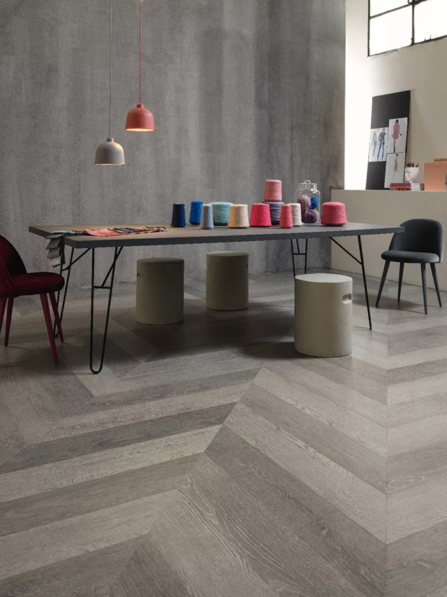 鋪貼在地面上形成流動(dòng)的延伸感,