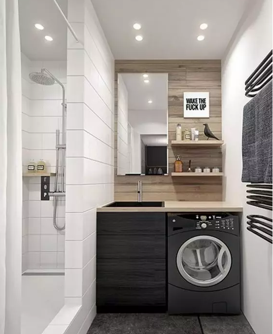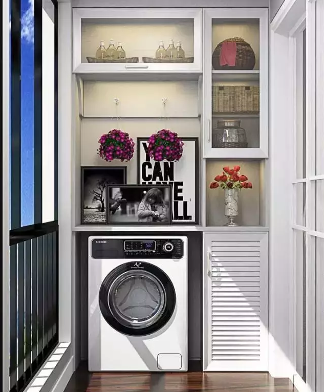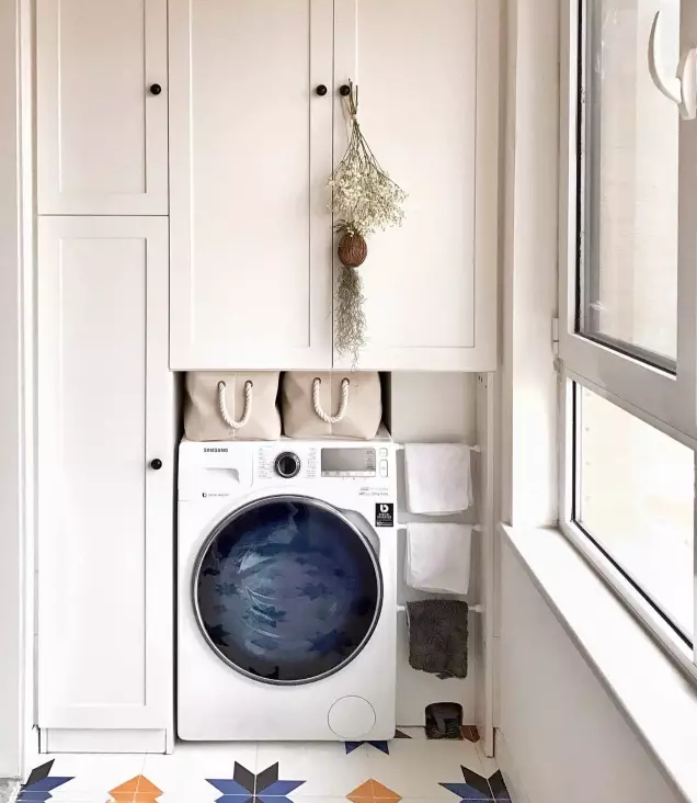 衛(wèi)生間面積不夠,或者覺得陽臺放洗衣機比較方便的小伙伴 ,也可以考慮把洗衣機放陽臺,這樣洗完直接晾曬。