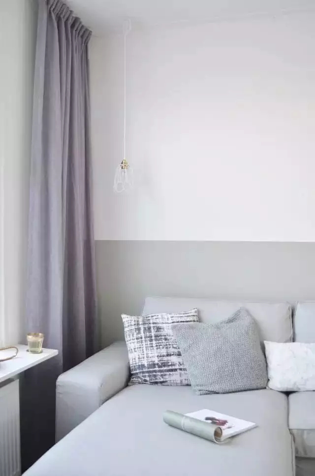 ▲將墻壁的下半部漆上較深的顏色,上半部的墻則和天花板同色,同樣以延伸感制造錯(cuò)覺。
