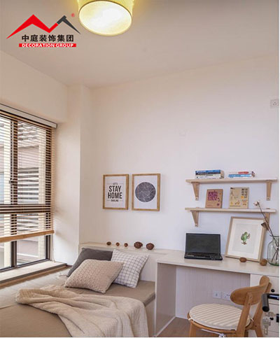 小小的書房在飄窗旁訂制了榻榻米,在美觀舒適的基礎(chǔ)上增加了儲(chǔ)物的功能。
