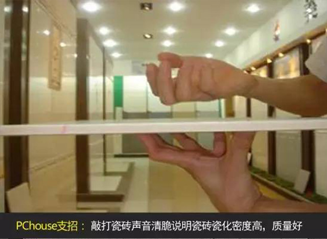 敲打瓷磚,聽聲辨密度。選擇瓷磚最重要的是考慮質(zhì)量問題,辨別瓷磚好壞有很多標(biāo)準(zhǔn),可以進(jìn)行敲打,聲音清脆說明瓷磚瓷化密度高,質(zhì)量好。