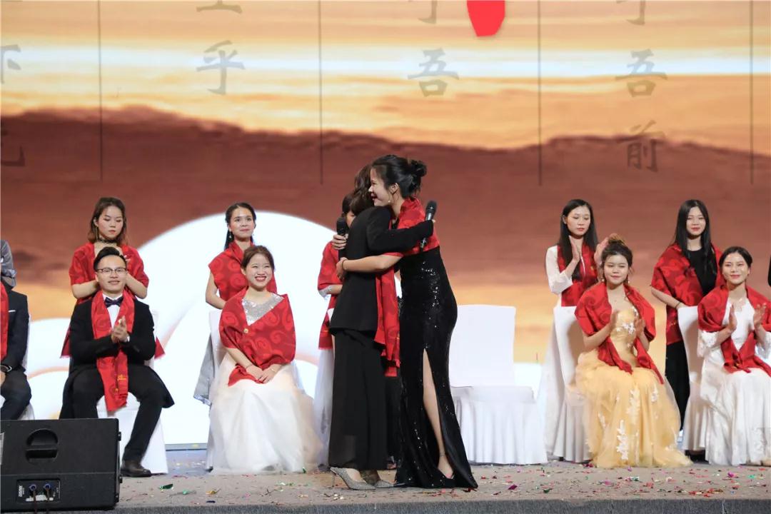 一杯茶,一句簡單的話,平時羞于表露的情感都在這一個擁抱里,都在心里。在歡快氣氛的帶動下,集團領導層突如其來的登臺,引爆了全場的尖叫和歡呼。
