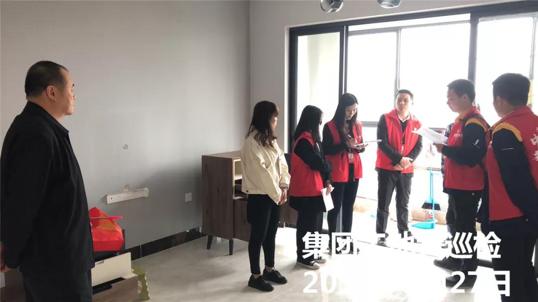 【巡檢人員】集團總裁助理黃總助,集團工程質量管理中心吳總、材料管理中心周總、網(wǎng)絡營銷管理中心劉總、發(fā)展戰(zhàn)略管理中心楊總;各公司正、副總經(jīng)理;工作生活委文化部長、集團工程部經(jīng)理、監(jiān)理部經(jīng)理、客服部經(jīng)理、運營各部經(jīng)理、工程各部經(jīng)理、材料部經(jīng)理、營銷各部經(jīng)理、網(wǎng)絡營銷各部經(jīng)理、客戶部經(jīng)理、預決算部經(jīng)理等。