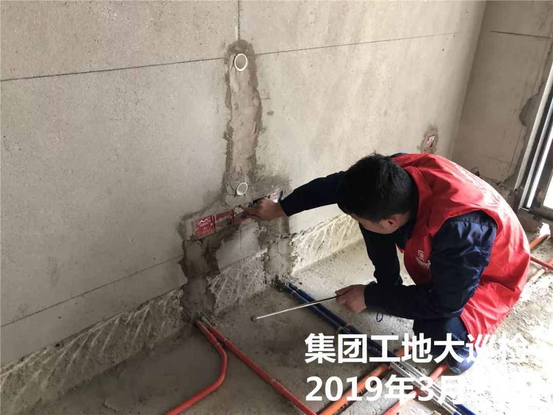 檢查墻面施工是否達到集團施工標準