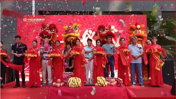 ▲集團(tuán)總裁丁胡先生、集團(tuán)副總裁吳文戰(zhàn)先生和開工業(yè)主一同上臺進(jìn)行開工剪彩。