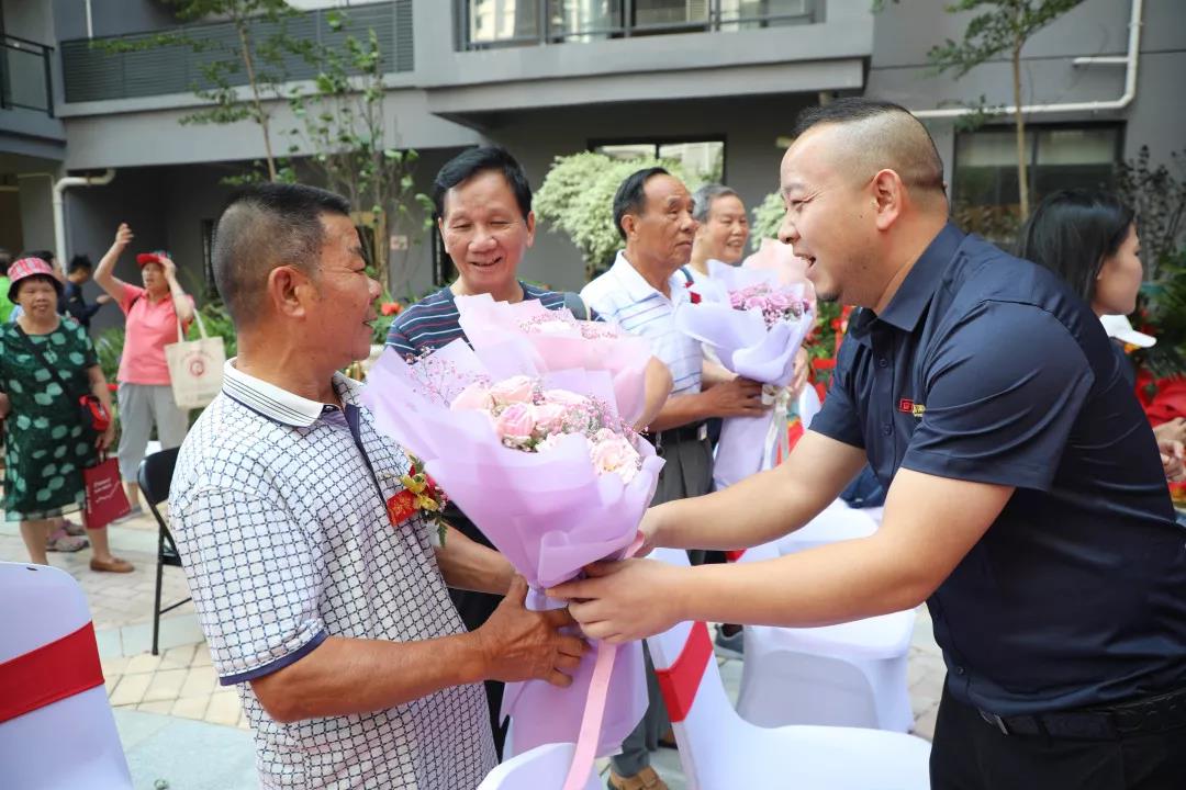 ▲同時,臺下的中庭家人們?yōu)闃I(yè)主獻(xiàn)上手捧花,并送上誠摯的祝福。