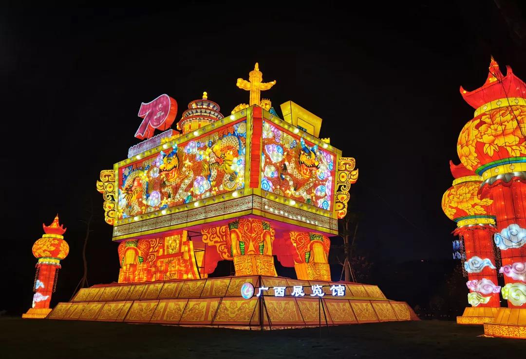 燈展切合新中國(guó)成立70周年的主題,結(jié)合廣西本土民族元素,目光所到之處,每個(gè)畫(huà)面都令人震撼。