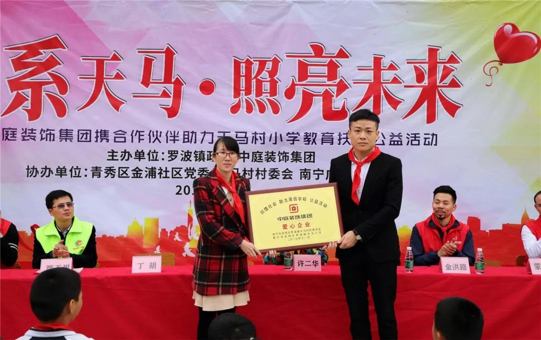 秉承著“源于社會(huì),回饋社會(huì)”的社會(huì)責(zé)任理念,在中庭裝飾集團(tuán)九周年慶之際,集團(tuán)攜手戰(zhàn)略合作伙伴組成愛心助力團(tuán)前往武鳴區(qū)天馬村天馬小學(xué)開展教育扶貧公益活動(dòng)。