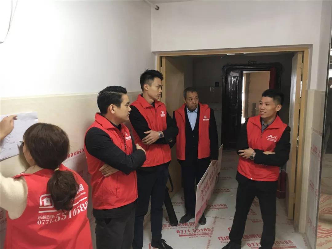 丁胡總裁與業(yè)主、施工師傅交流膩子施工情況;交流過程中明顯可以看出師傅和業(yè)主朋友的關(guān)系非常融洽,巡檢現(xiàn)場其樂融融。