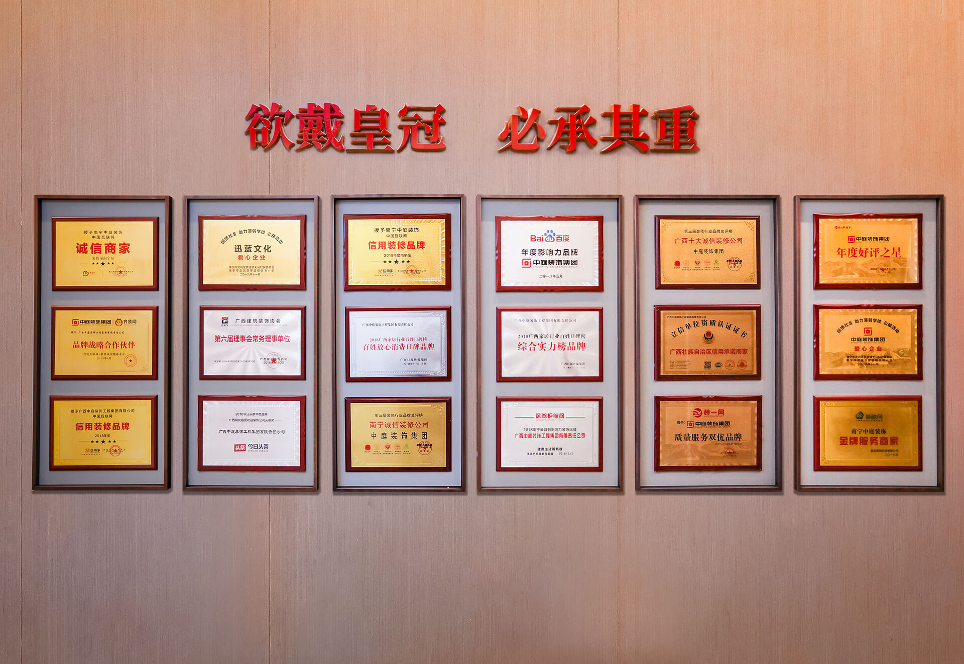 集團堅持以匠魂匠心筑家,憑借統(tǒng)一規(guī)范的施工工藝、卓越的品質(zhì)、良好的信譽及優(yōu)質(zhì)的服務(wù)頻獲認可,多次榮獲“3·15誠信企業(yè)”、”廣西壯族自治區(qū)信用裝飾示范企業(yè)”、”廣西壯族自治區(qū)信用承諾商家”、“百姓放心消費口碑品牌”、“廣西影響力·工匠精神品牌”等榮譽稱號。