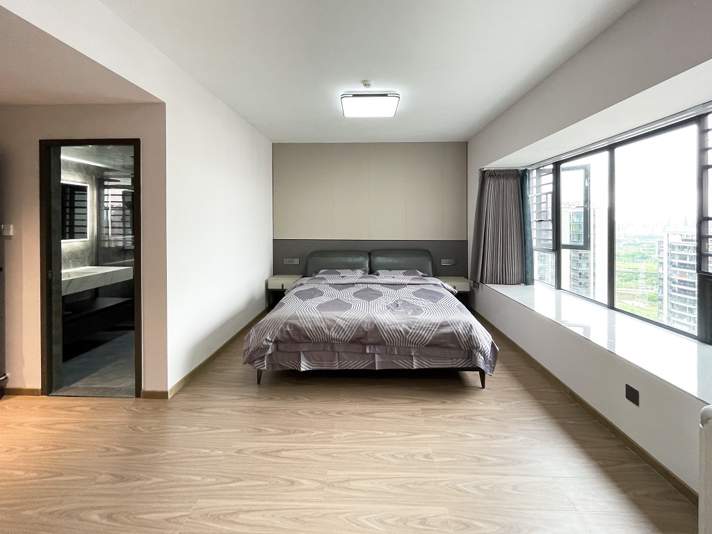 極簡的設計,簡單的生活,其樂融融的三代同堂生活由此開始,簡約又不是溫馨的氛圍,搭配上這個視野超好的陽臺,簡直是夢中情房。