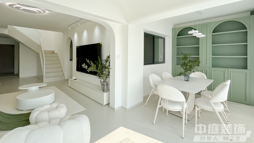 瀏覽量:439這是一套118㎡的復式住宅,將清新綠與奶油色巧妙融合,營造出一種寧靜而溫馨的氛圍,如夢如幻的浪漫生活由此開始,大面積窗紗將室外光線過濾后傾撒入客廳。