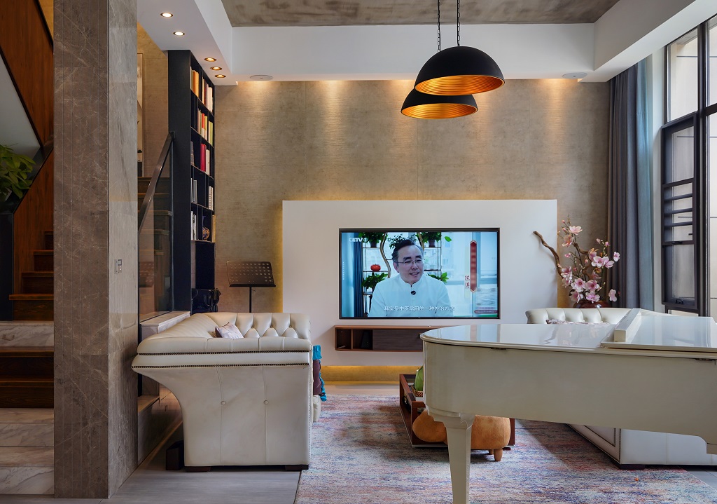 瀏覽量:84這套房子裝修風(fēng)格是工業(yè)風(fēng)與輕奢風(fēng)的巧妙融合,日常又不失格調(diào)。水泥質(zhì)感的吊頂保留了工業(yè)風(fēng)的粗獷感,搭配暖黃色的吊燈,瞬間讓空間溫馨起來(lái)。墻面采用質(zhì)感石材與簡(jiǎn)約板材結(jié)合,電視背景墻的設(shè)計(jì)簡(jiǎn)潔大氣。家具選擇了皮質(zhì)的輕奢款沙發(fā),觸感舒適且顯質(zhì)感。樓梯區(qū)域很有特色,木質(zhì)臺(tái)階搭配金屬扶手,旁邊的綠植和書(shū)架為空間增添了生機(jī)與文藝氣息。還有那架白色鋼琴,讓整個(gè)家在日常中多了一份藝術(shù)氛圍,無(wú)論是休閑還是待客,都能感受到這份融合了工業(yè)硬朗與輕奢精致的舒適日常。