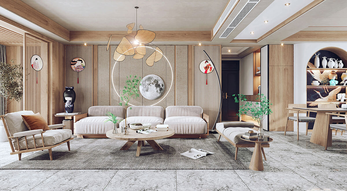 瀏覽量:220客廳通常被視為日式室內(nèi)設(shè)計(jì)的重要區(qū)域。通常采用開(kāi)放式布局,使客廳與餐廳、廚房和走廊相連。使空間富有靈活性。